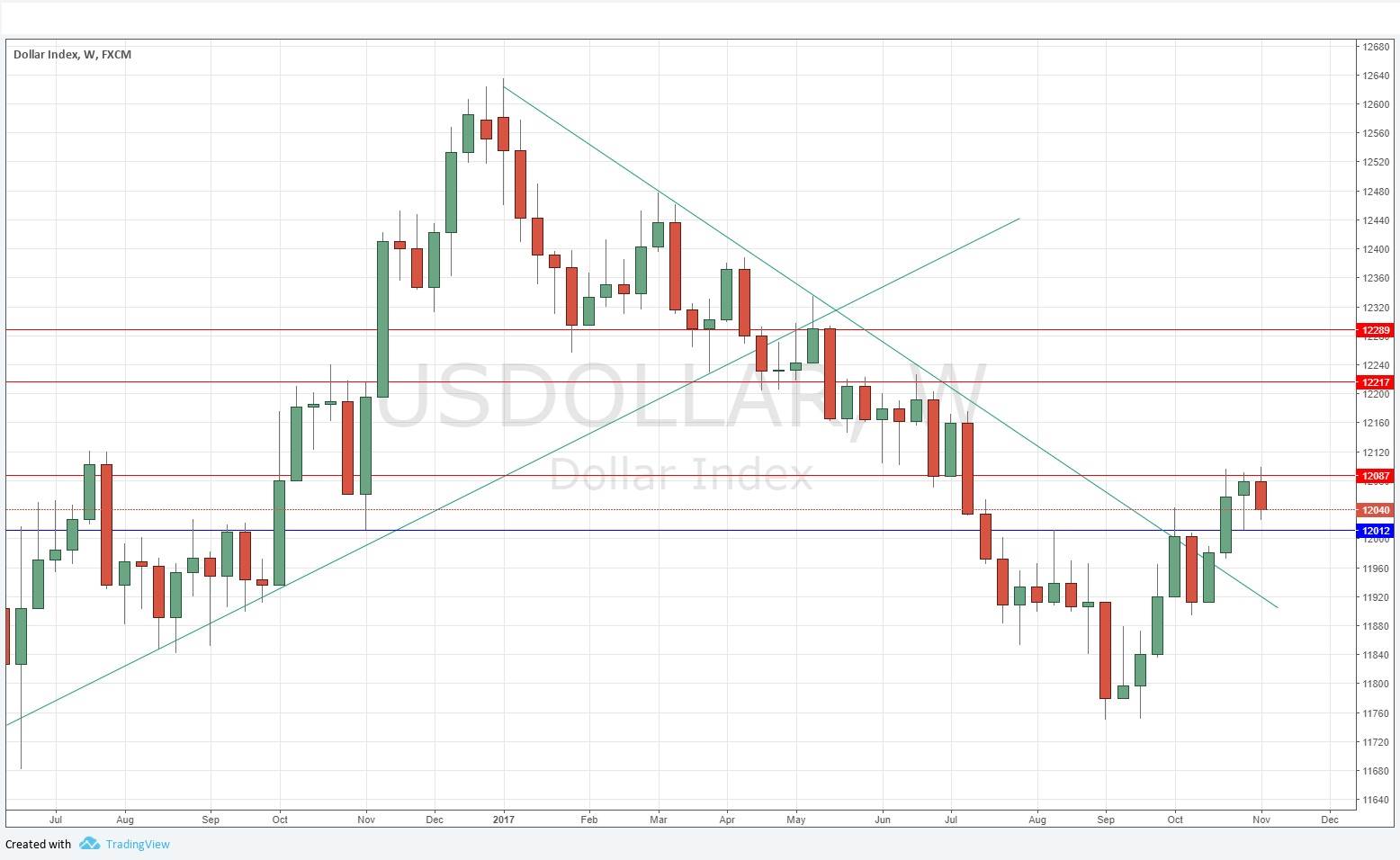 This pair printed a bearish engulfing candlestick, and it looks as if there may be new resistance holding the price down from 12087, shown in the chart below. I wrote last week that this level might halt any further advance. It would not be a surprise if we begin a period of consolidation and uncertainty following the end of the recent bearish trend, so it is hard to be very confident in the Dollar’s short-term direction.