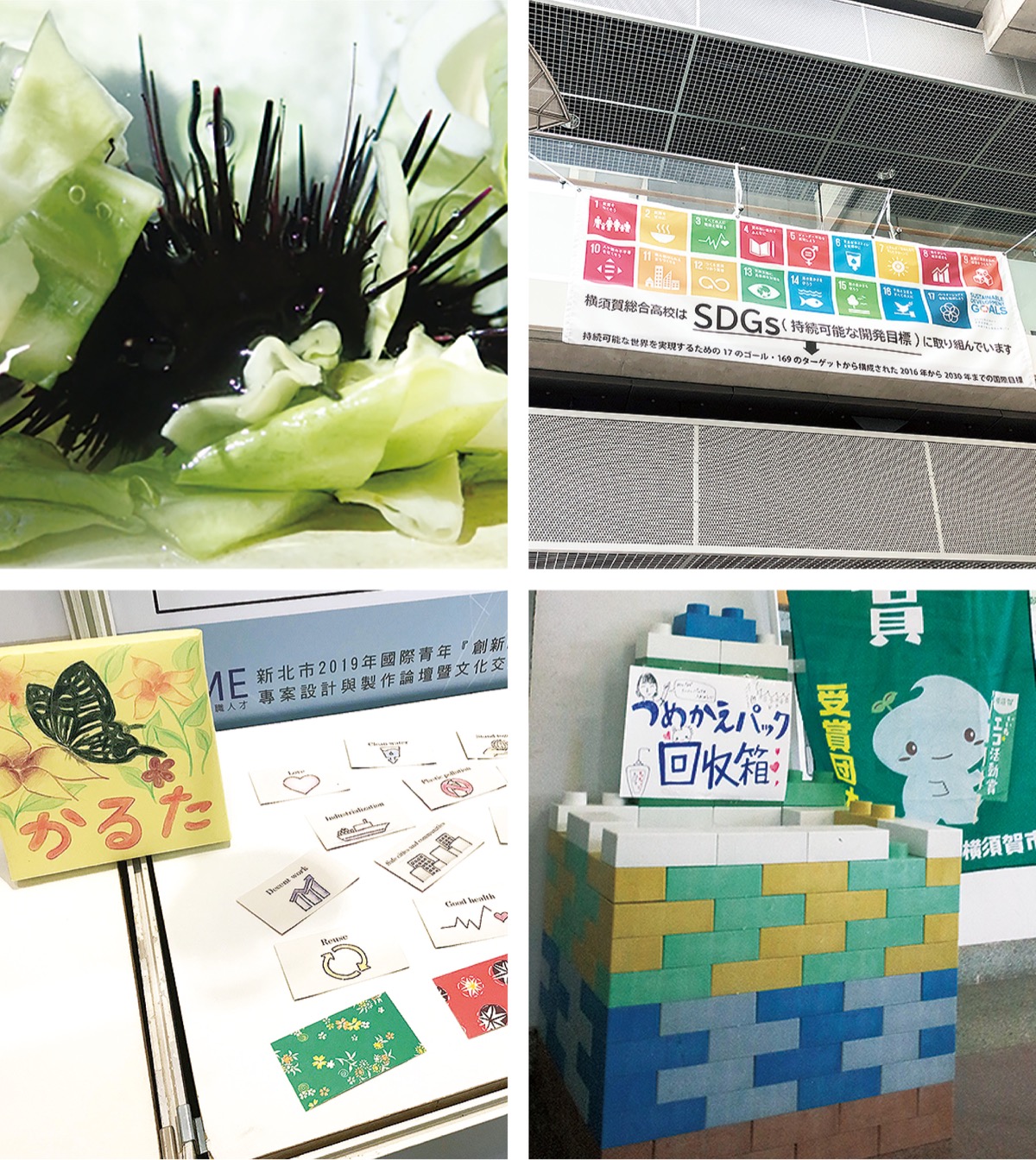 県立横須賀高校では、花王株式会社が行っている「リサイクリエーション」に賛同。再利用を意味するリサイクルと新たな価値を創造するクリエーションを合わせ造語で、単に再利用するのではなく新たなものを作り出そうとする取り組み。洗剤やシャンプーの詰め替え用パックを回収し、再生樹脂ブロックに加工。同校では、昨年の文化祭でこれの回収ボックスを設置し2600パック以上を集め業者に提供。現在も回収を行っている。