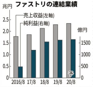 カジュアル衣料品店「ユニクロ」を運営するファーストリテイリングは9日、2020年8月期通期の連結純利益(国際会計基準)が前期比1%増の1650億円になりそうだと発表した。従来予想(8%増の1750億円)から下方修正する。韓国で続く不買運動などの影響で冬物商品の販売が振るわないためだ。
