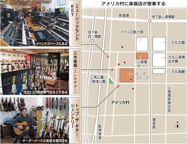 大阪・アメリカ村に楽器店集結 街の空気と共鳴 - 日本経済新聞