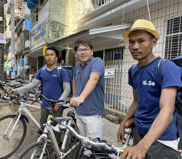 ミャンマーの最大都市ヤンゴンでスマートフォンアプリを使った電子商取引(EC)モールと自転車宅配を組み合わせたサービス「Hi-So(ハイソー=配送)」を展開するのが高田健太(30)だ。