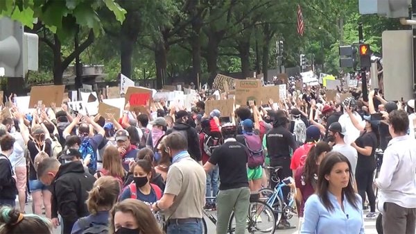 人種差別に抗議する大規模デモは2日も行われたが、日中は大きな衝突には発展しなかった。