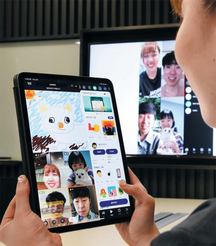3년 차 스타트업인 웨이브는 영상 통화 기반의 놀이 앱이다. 최대 8명이 동시에 영상 통화를 하면서 틀린그림찾기와 같은 게임을 즐기는 방식이다. 그냥 멍하니 같은 유튜브를 보면서 낄낄거리기도 한다. 웨이브는 작년 10월 가입자 100만명을 넘더니, 올 5월 150만명을 돌파했다. 가입자의 90%가 24세 이하다. 웨이브의 이성호 대표는 "과거에는 전화로, 문자로 친구들과 떨던 수다가 이젠 영상으로 바뀐 것"이라며 "내년 말까지 300만 가입자 확보가 목표"라고 했다.